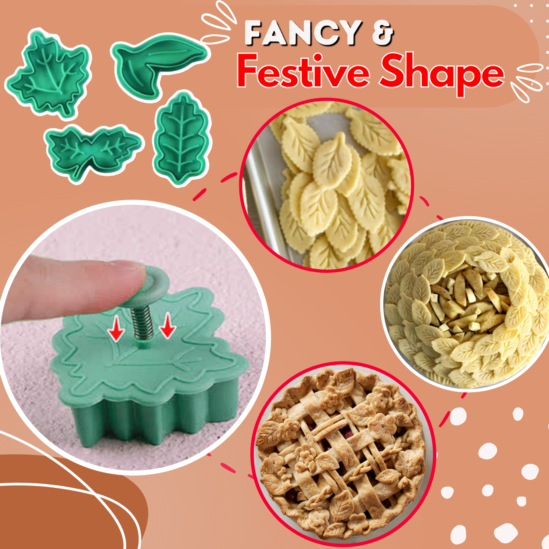Decorative leaf shape plungers cut perfect shapes for pies, cakes, and cookies